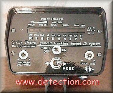 This Detector has Version 2.10 Chip Previous Versions: Version 1.90d of the microchip is finished and the info on the additional features have been appended at the bottom of this page. The changes from version 1.20q were the addition of LED and, if you want, audio indication when the Deep Search program activites and audio on targets rejected in the Standard Discrimination all metal mode. Beginning with version 1.1w just below all the features listed in v 1.1w, 1.20q and 1.90d are programmed into the chip. It's my understanding v1.90d is the final version. Below are the specs and operating instructions for the new chip as it stands through version 1.90d. Hambyware CoinTrax II Microchip version 1.10w Note: The following pre-release information applies only to the first prototypes. This program is subject to change. Additional improvements and features may be added before the production chip is released. The operation of the CoinTrax using this prototype chip is identical to version 1.00 except for the following improvements. General Non-Volatile memory -- A "detector image" is the information needed to restore all detector settings should you turn the detector off. The CoinTrax keeps an image of your current settings and continuously updates this image when you make changes. You don't have to be concerned with storing the detector image in non-volatile memory. It's fully automatic. The CoinTrax knows what information to store and when to store it. This process is totally transparent to the user. Specifically user data is stored when a key is released, not when it is first pressed or continuously held down. If you turn the detector off immediately after making a setting change, the information is still stored in non-volatile memory. The exception to this is, if you press and hold down a key then turn the detector off before releasing the key. Although this is not likely to happen in normal operation it's something to be aware of. The CoinTrax stores the User programmable presets in a four block section of EEPROM non-volatile memory. The current operating image of all the detector settings is also store in a block of non-volatile memory. This block is call the mirror EEPROM block. Whenever you make any setting changes this block is updated so that it is an exact mirror image of how you currently have the detector set. When you turn the detector off, the last image that was present when you turned off the metal detector is now stored in the mirror memory block. Subsequently, when you turn the detector on, one of the first things it does is fetch the information from the mirror memory and restores it. To you, it appears that nothing has changed. Everything is set the same as before. User Presets -- In this version the Preset sub-menu has been modified and now contains 4 user programmable settings. These are located at led locations numbers 1, 2, 3 and 4. See the specifications section for more information. The User presets are useful for storing common detector setups. The operator may have one or more setups that have been optimized for different applications. Since there are four User preset locations the operator can store up to four custom detector setups that can be recalled at any time. Factory Reset -- The Factory (memory) reset feature allows you to return the detector to the factory default settings. These settings are listed in the specifications of this manual. Normally you will not need to use this feature. A Factory Reset is sometimes useful if you get confused with your settings and want to restore the detector to a known setup. A Factory Reset will not affect the User preset settings. The User presets are permanent and can never be erased. However, they can be written over or modified at any time. The Factory Reset is used to initialize the non-volatile EEPROM memory after the chip is programmed at the factory. SST (Smart Scan Technology) -- When improvements are made in software programs, generally features are not removed. This is the case for the SST feature. In this version of the CoinTrax, the SST can be turned on and off from within the LED sub-menu. When you receive the CoinTrax, by default the SST feature has been turned off. Battery Check by-pass -- Normally when you turn-on the Treasure Baron using the CoinTrax you must wait until the battery check sequence is completed before normal operation can begin. This takes several seconds. This step can be quickly by-passed using the Toggle switch. Operation Factory Reset To active the Factory reset perform the following procedure: Before starting this procedure the detector must be off. Now press and hold down the RIGHT key and the MENU key at the same time. While holding these two keys in this position turn the detection on. Wait until one or more leds light, then release both keys. If the detector is on and you want to perform a Factory Reset turn it off and wait for at least 5 seconds before performing the procedure. Remember, you must hold both keys firmly depressed before and during detector turn-on and until one or more leds light before you can release either key. If your performed this procedure correctly all the leds will go off as soon as you release both keys. If they didn't go off immediately when you released the keys, you didn't perform it correctly. Repeat the procedure until the display goes off when you release the keys. The Factory reset procedure was purposely made difficult to perform. Hence, it is highly unlikely that the operator would accidentally perform this exact sequence of events and reset the CoinTrax. Detector operating images stored in User presets are not affected by the Factory Reset procedure. Smart Scan Technology The SST can be turned on and off as follows: To turn the SST ON -- Enter the LED sub-menu. After selecting the led lock-on time press and hold down the ENTER key. Then press the RIGHT key. Now release both keys. If you performed the procedure correctly, when you press the ENTER ke